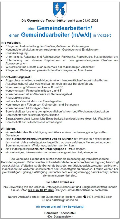Auf den nachfolgenden Seiten erhalten Sie umfangreiche Informationen rund um die Gemeinde Todenbüttel.